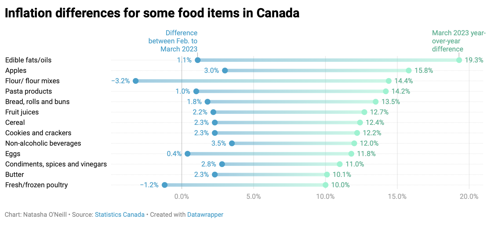 The latest Consumer Price Index from Statistics Canada shows prices of some staple food items rising more slowly, but remaining high year-over-year.