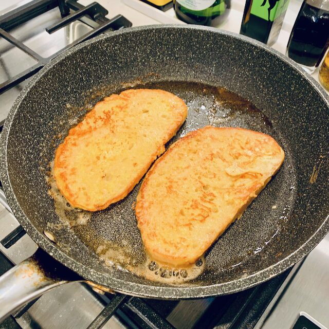 フレンチトーストは強火でさらって焼いた方が焼き目が美味しくついていい感じですね。
