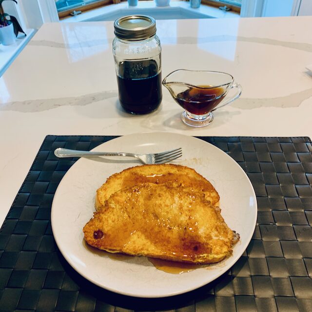 普段朝食は別々に取るのですが先日は夫くんも早起きアテシも遅起きで時間が合い夫くんのフレンチトーストを頂く事になりました。