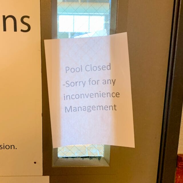 翌日も閉鎖したままで、滞在初日をのぞいてプールは結局として開くことはありませんでした。